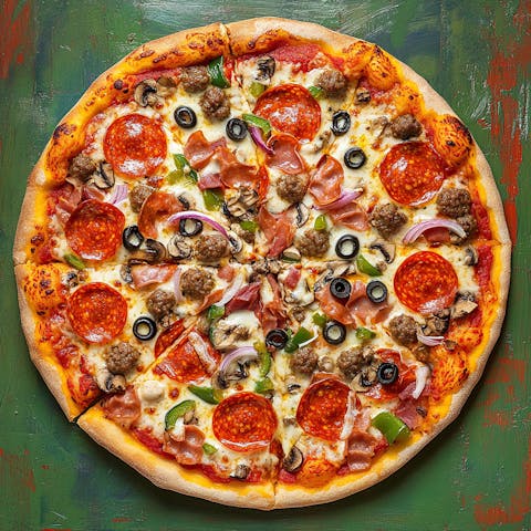 Pepperoni, Sausage, Meatball, Onion, Peppers, Mushroom
